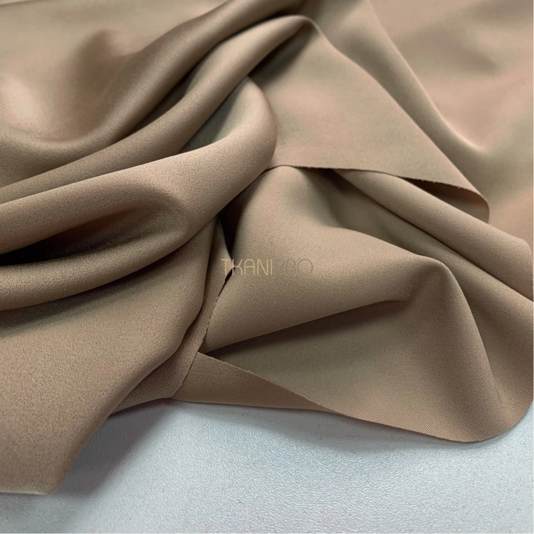Атлас креп сатин. Плотная, струящаяся ткань мелкого крепового переплетения. Одна сторона креповое переплетение с благородным умеренным блеском. Другая сторона матовая. Без ярко выраженного изнаночного или лицевого эффекта. В изделиях зачастую используют обе стороны этой ткани. Шелковистая и гладкая на ощупь, приятная к телу. Немного тянется как по кромке, так и поперек кромки. Не мнется, форму не теряет после стирок.