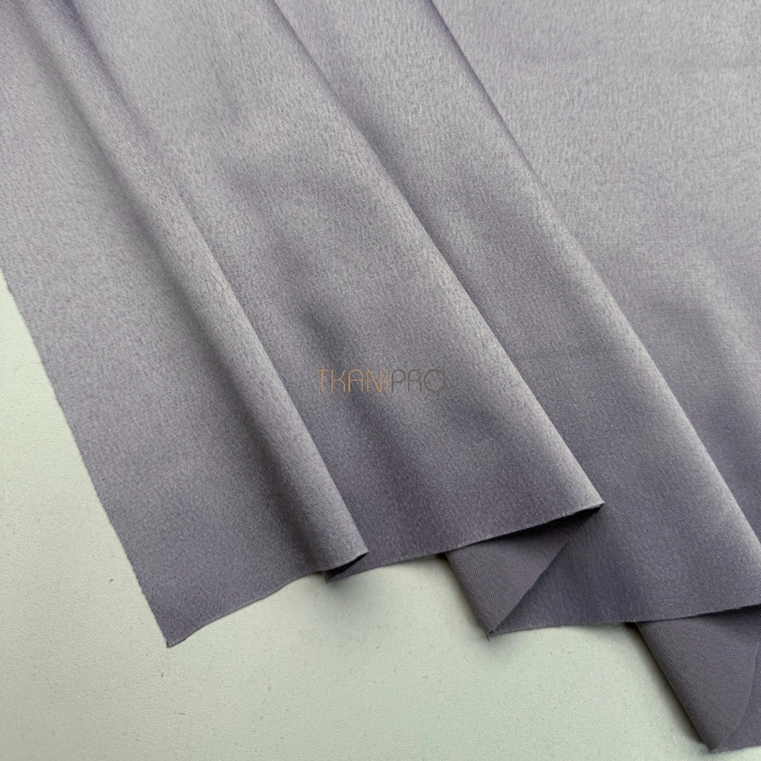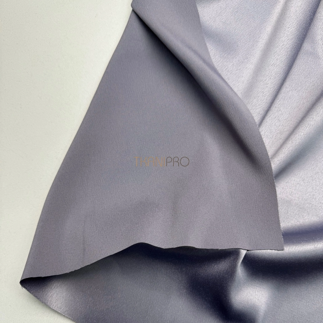 Лицевая сторона с умеренным сатиновым блеском (полуматовая). Изнанка матовая. Гладкая, шелковистая, струящаяся ткань, хорошо драпируется, держит форму.  Ложиться в красивые складки и драпировку. Скользкая на ощупь, комфортная к телу. Не просвечивает. Немного тянется поперек кромки. Мало мнется. Устойчив к механическим повреждениям (зацепки).