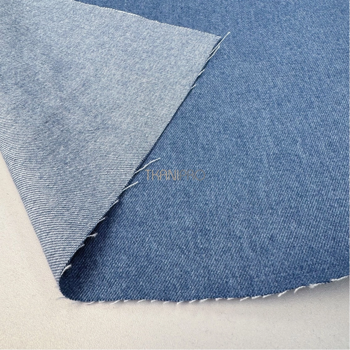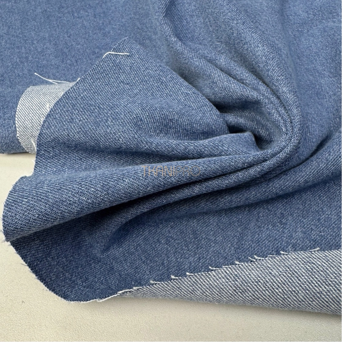 Классическая джинсовая ткань плотная. Без эластана, растяжимости у ткани нет. С фактурой в диагональный рубчик. Мало мнется, изделие из данной ткани своей формы не теряет, принимает первоначальный вид, после стирки или проглаживания утюгом.  Так как ткань 100% хлопок. Ткань можно дополнительно "сварить" или выбелить, со специальными химическими составами, тем самым усилив эффект варенки.  Можно стирать, можно кипятить, можно дополнительно отбеливать. При стирке может давать усадку до 3-5 см. Стирка показана в ручном и машинном режиме до 60 градусов. Подходит для пошива: джинсов, джинсовых курток, плащей, сарафанов, юбок, жакетов, сумок - шопперов, кепок, бейсболок, панамок. Весь спектр одежды из денима.