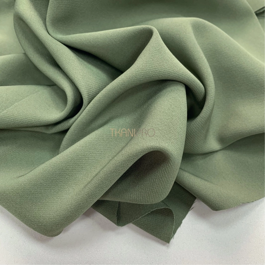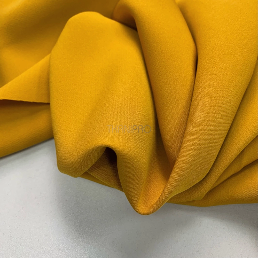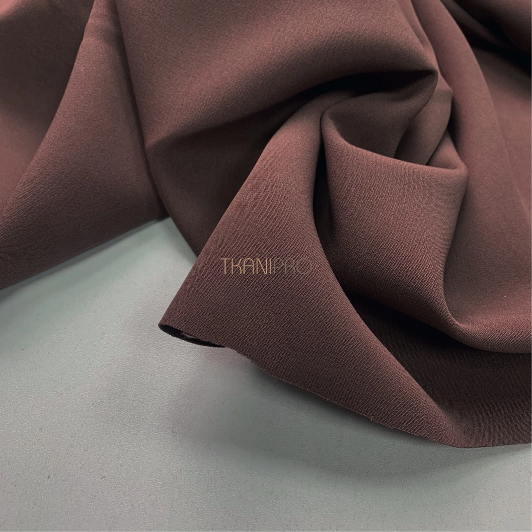 Ткань костюмная с креповой фактурой. Средней плотности, хорошо драпируется, пластичная. Гладкая, струящаяся, комфортная, пластичная.  Не мнется, не просвечивает. Светлые оттенки ткани могут немного просвечивать, для комфорта ношения, может потребоваться подкладка. Красиво закладывается в струящиеся складки, защипы, драпировку.