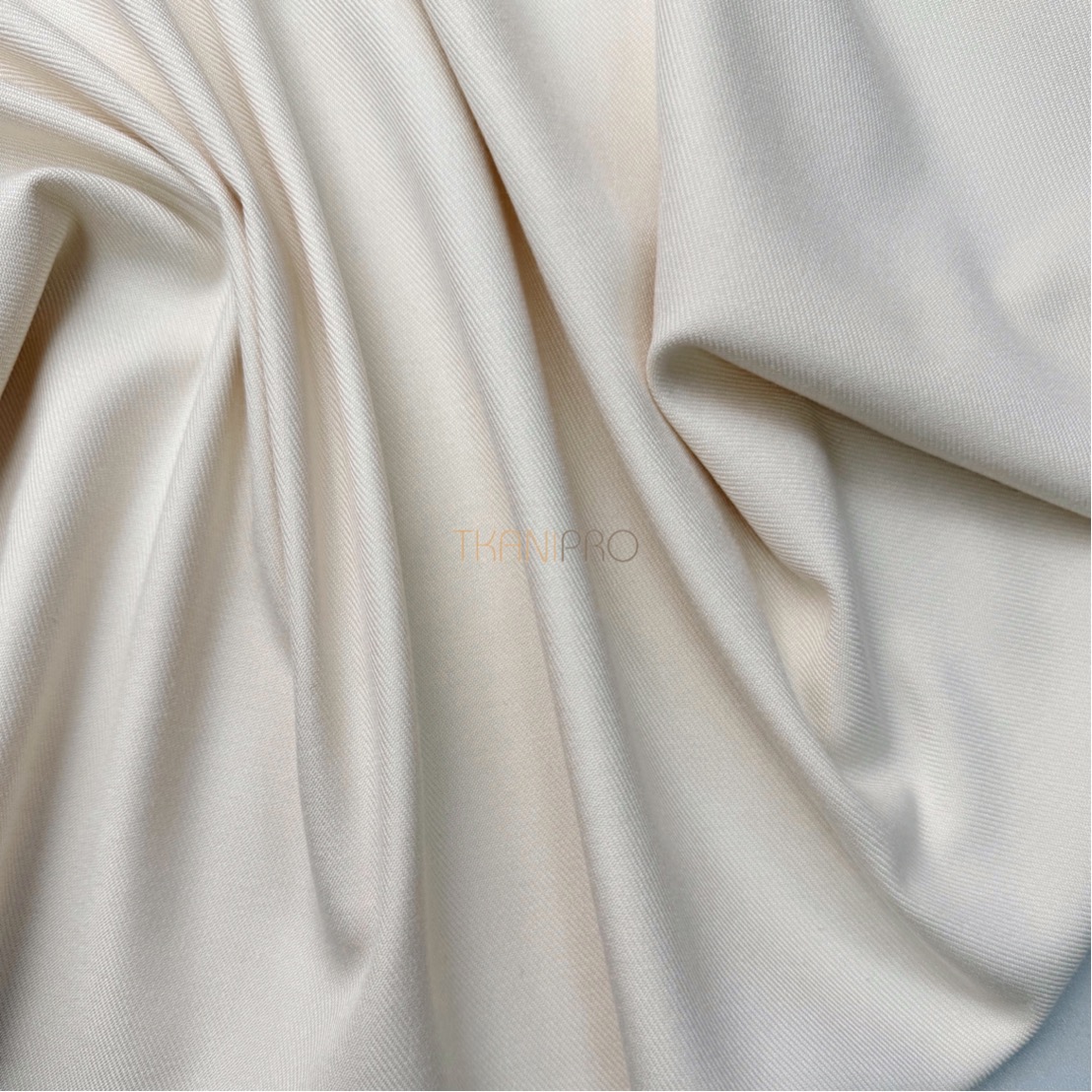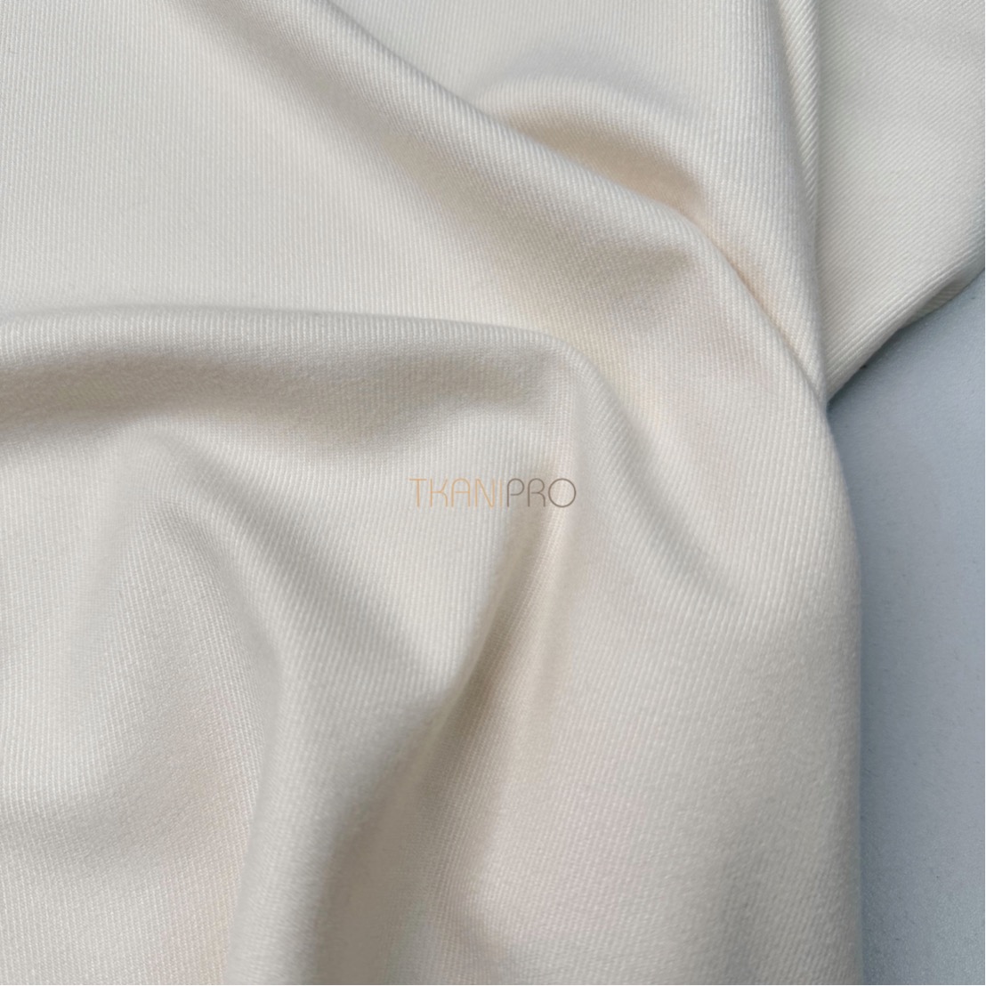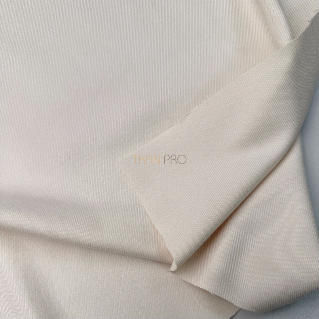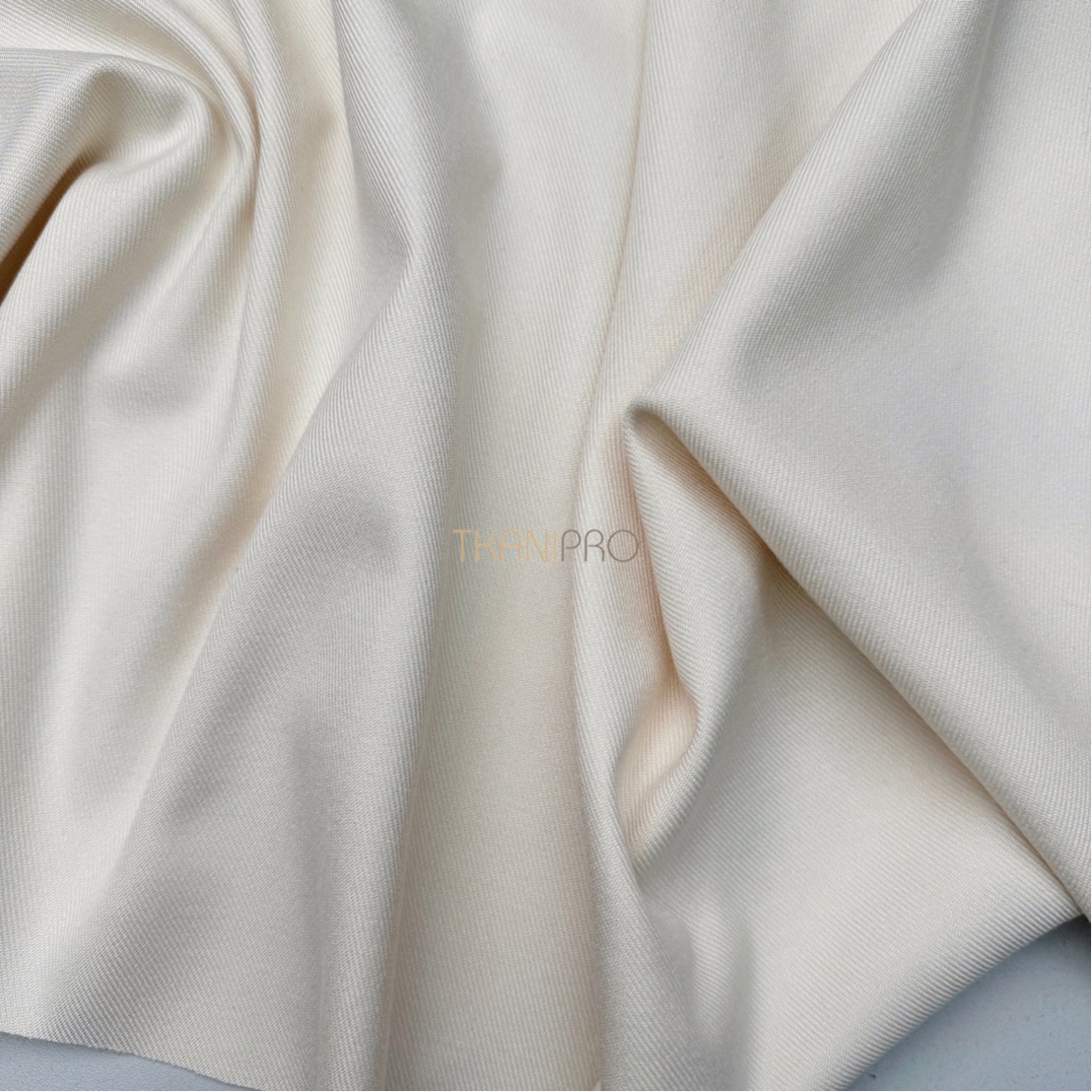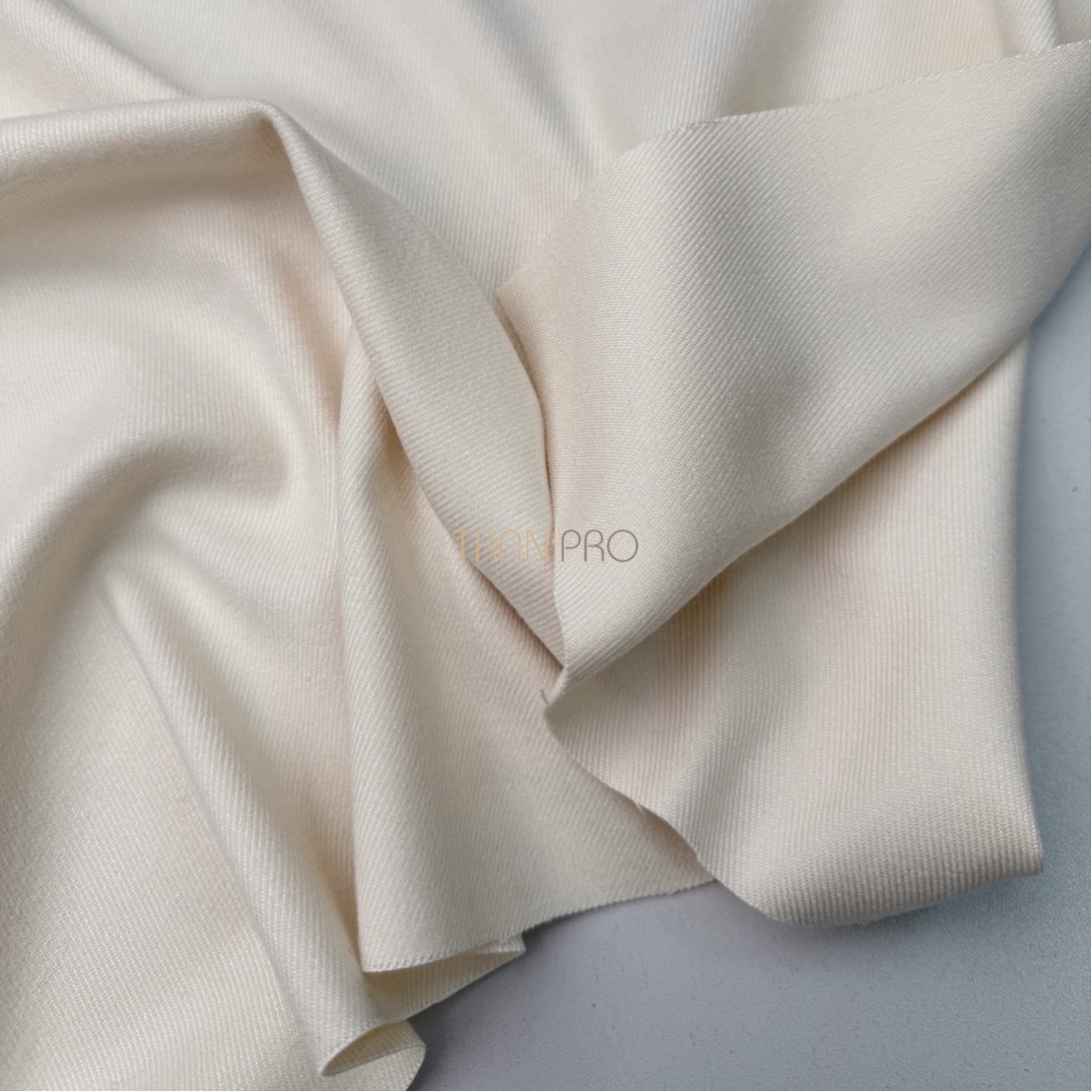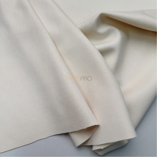 Ткань обладает плотной структурой. Поверхность ткани гладкая в диагональный рубчик. Содержание полиэстера обеспечивает прочность и долговечность ткани, делая её устойчивой. Сама ткань мягкая, приятная к телу, не просвечивает и не мнется, хорошо драпируется. Визуально похожа на дорогую шерстяную ткань.