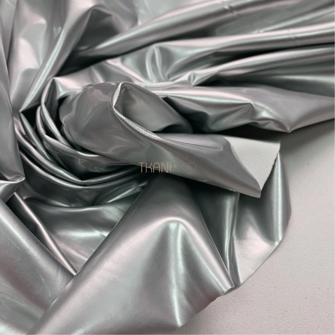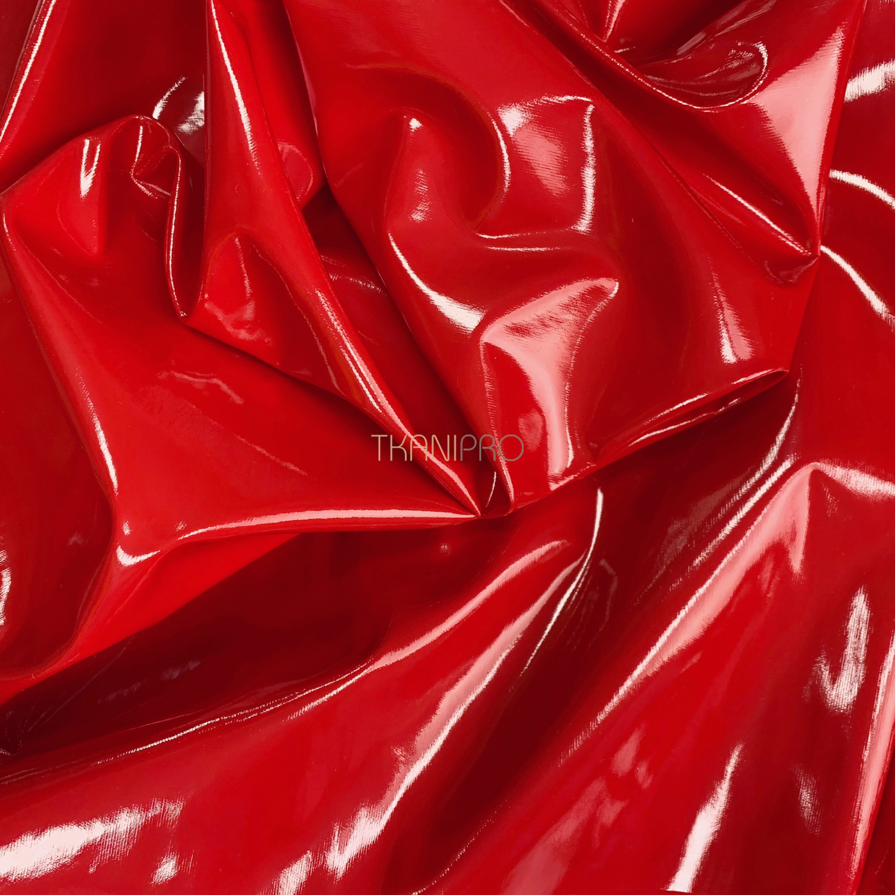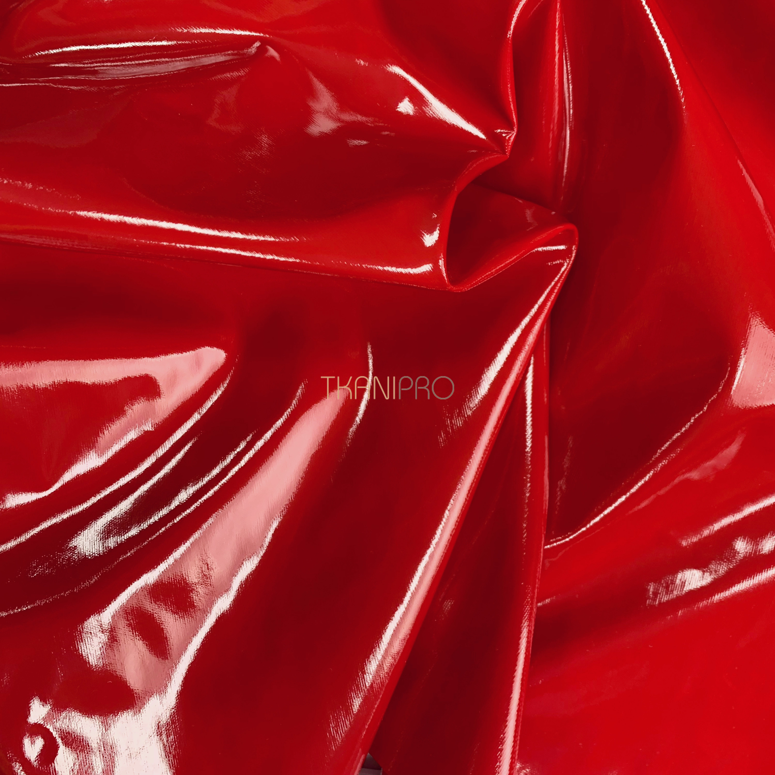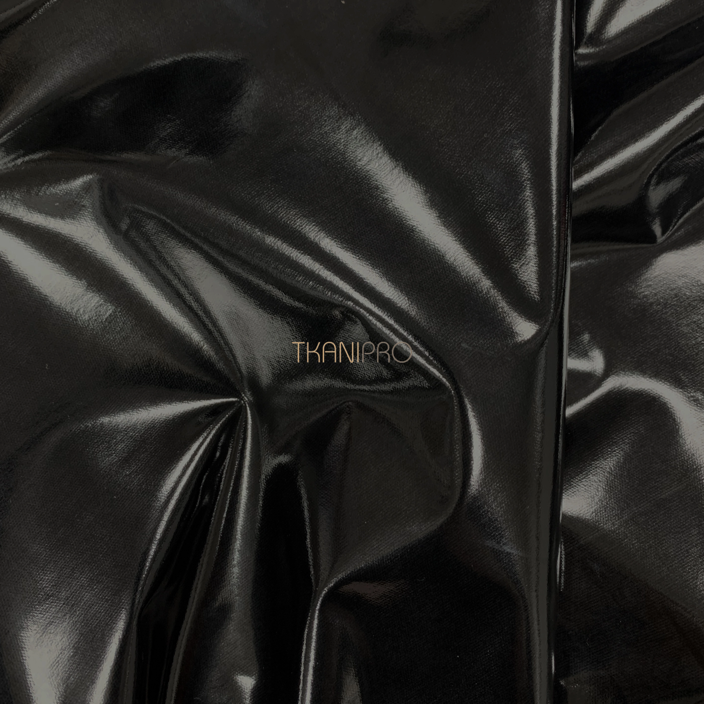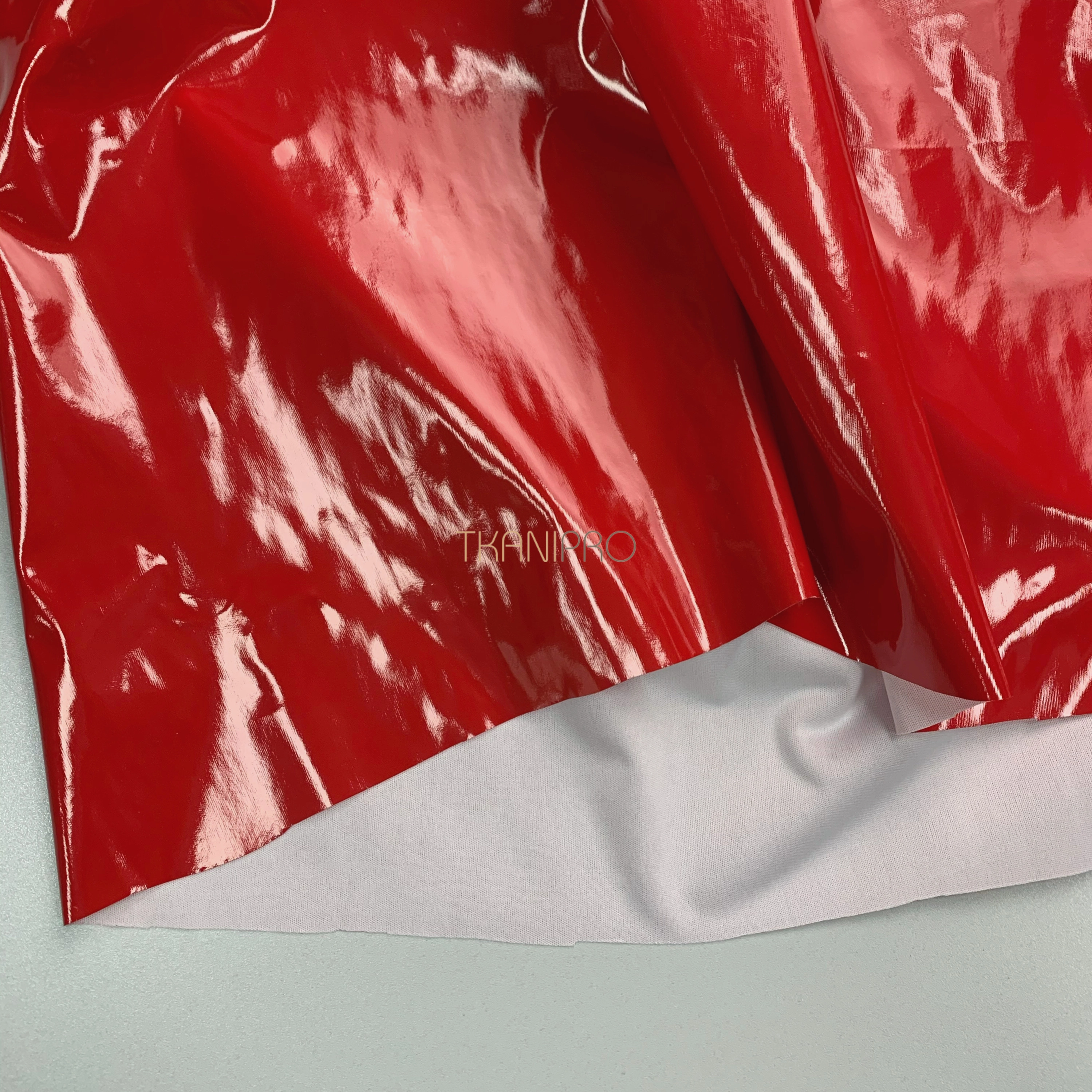 Гладкая и очень блестящая лаковая экокожа. С глянцевой, зеркальной лицевой стороной и трикотажной основой на изнанке. Немного тянется поперек кромки. Хорошо держит форму, упругая, почти жесткая ткань. На ощупь: скользкая, гладкая, приятная.