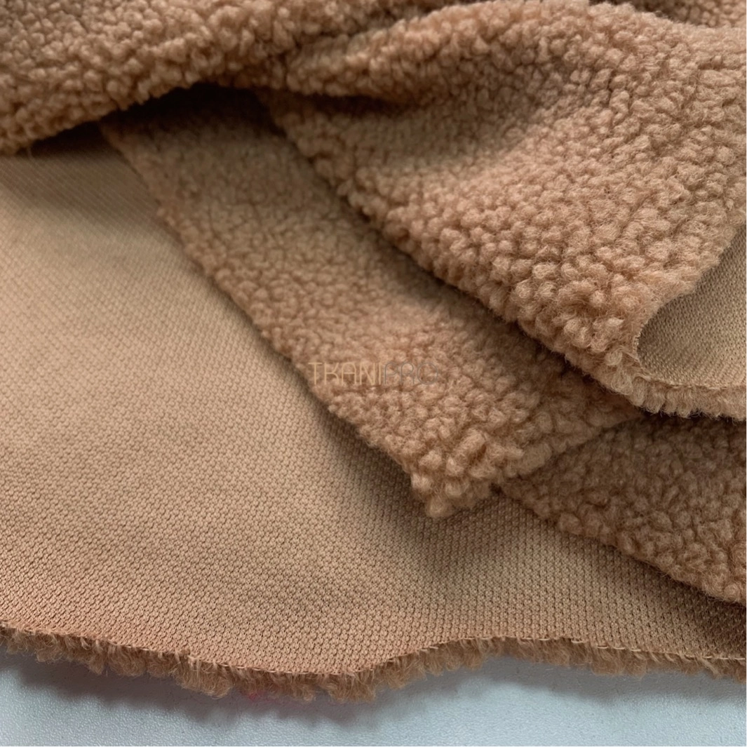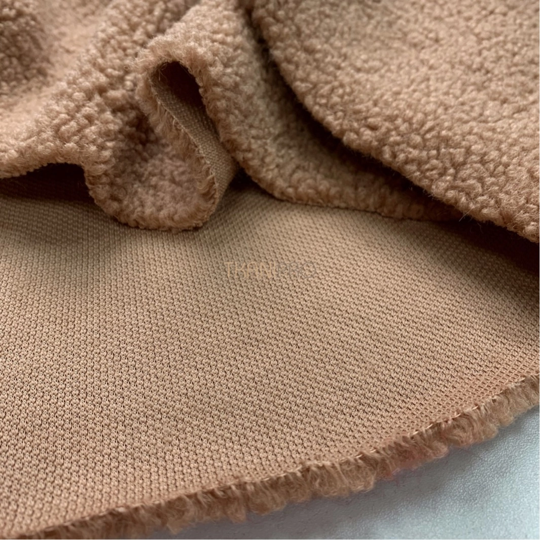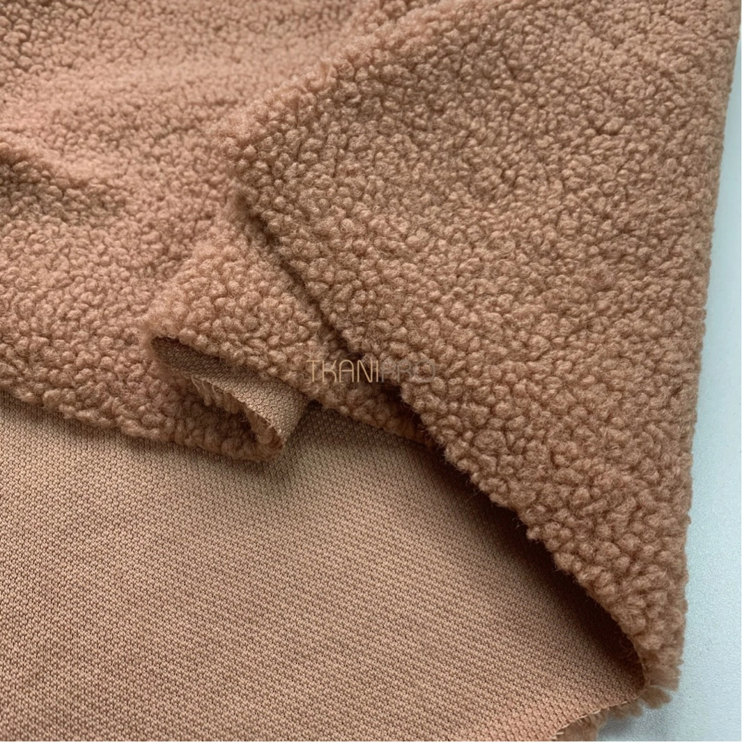 Искусственный мех "Тедди" характеризуется мягкой, бархатистой текстурой с коротким ворсом, создающей уютный и теплый эффект. Поверхность ткани напоминает мех плюшевых медведей, что делает её особенно приятной на ощупь.  Мягкий, густой ворс высотой до 5 мм. Пластичный, хорошо драпируется. С изнанки трикотажная основа, немного тянется поперек кромки. На сгибе ткани не видна трикотажная основа, благодаря густому ворсу.