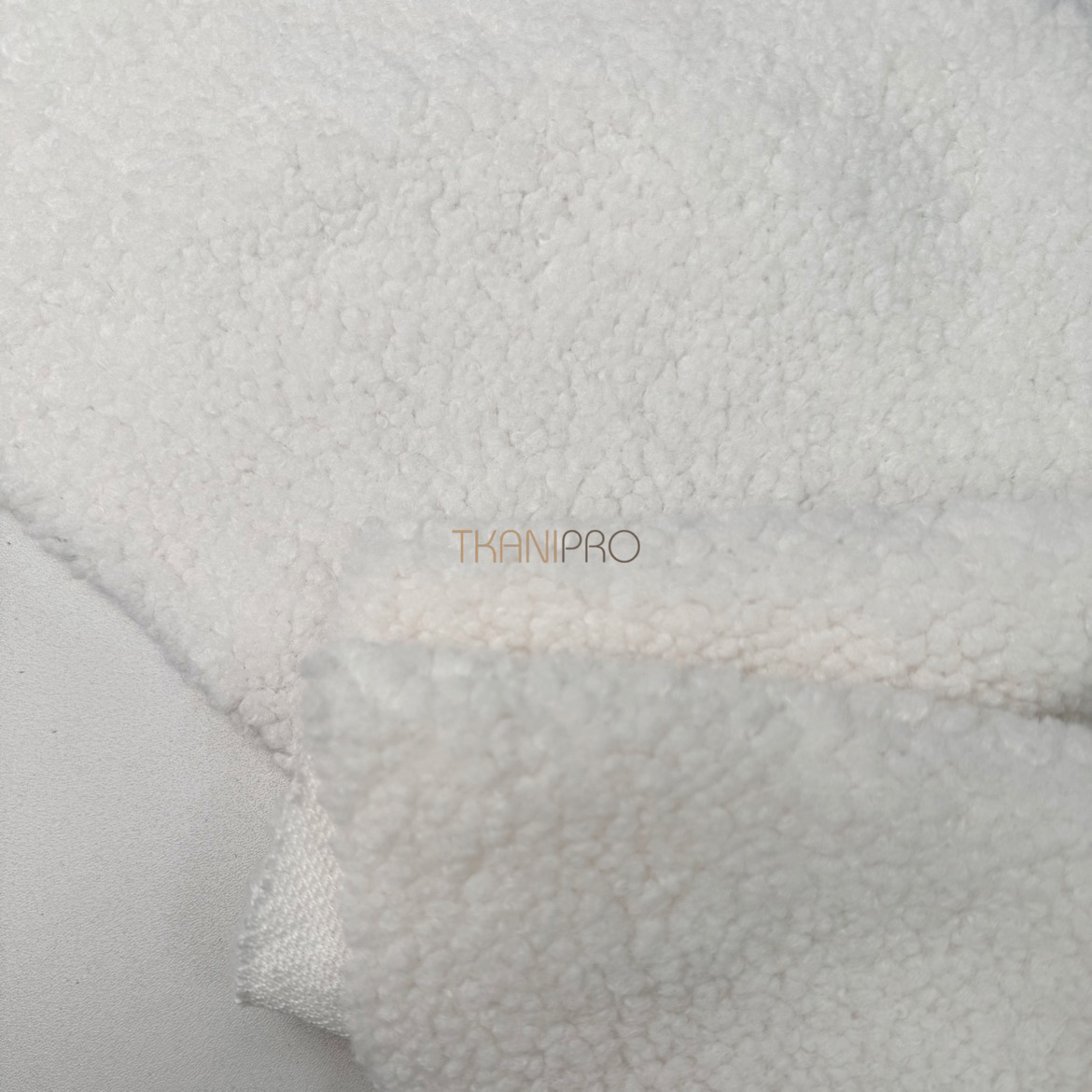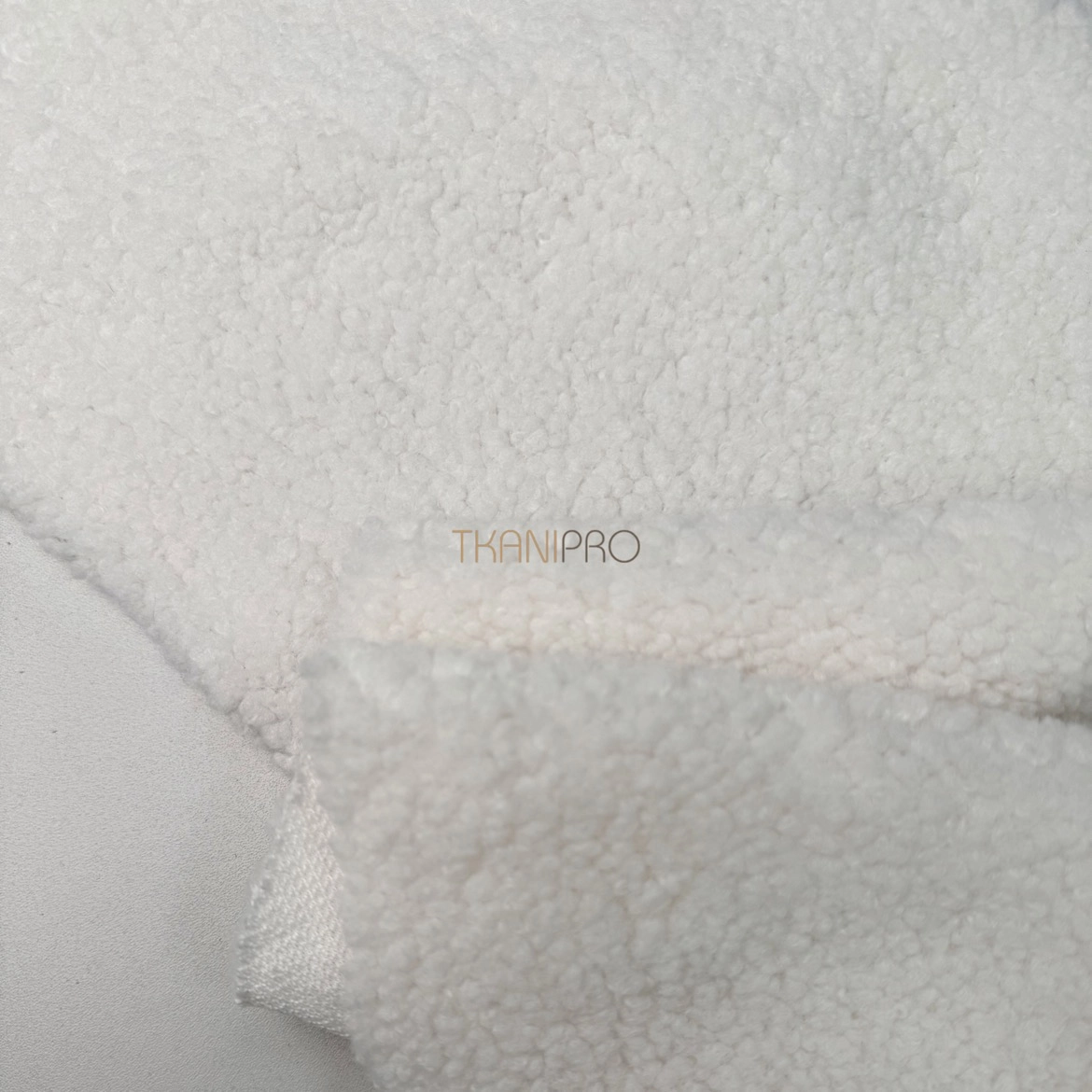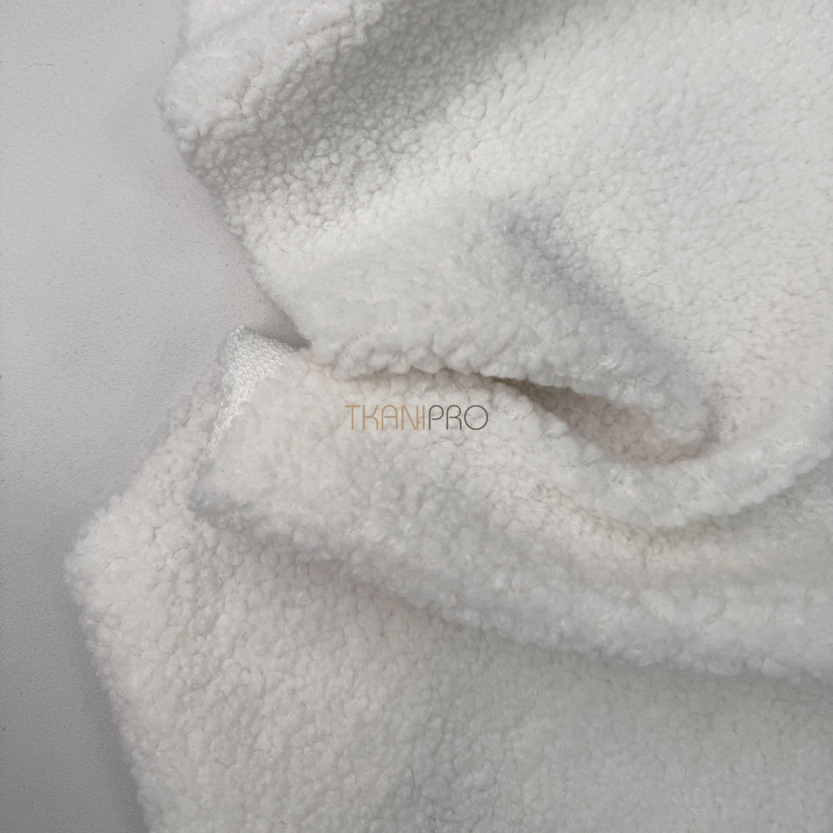 Искусственный мех "Тедди" характеризуется мягкой, бархатистой текстурой с коротким ворсом, создающей уютный и теплый эффект. Поверхность ткани напоминает мех плюшевых медведей, что делает её особенно приятной на ощупь. Мягкий, густой ворс высотой до 5 мм. Пластичный, хорошо драпируется. С изнанки трикотажная основа, немного тянется поперек кромки. На сгибе ткани не видна трикотажная основа, благодаря густому ворсу.