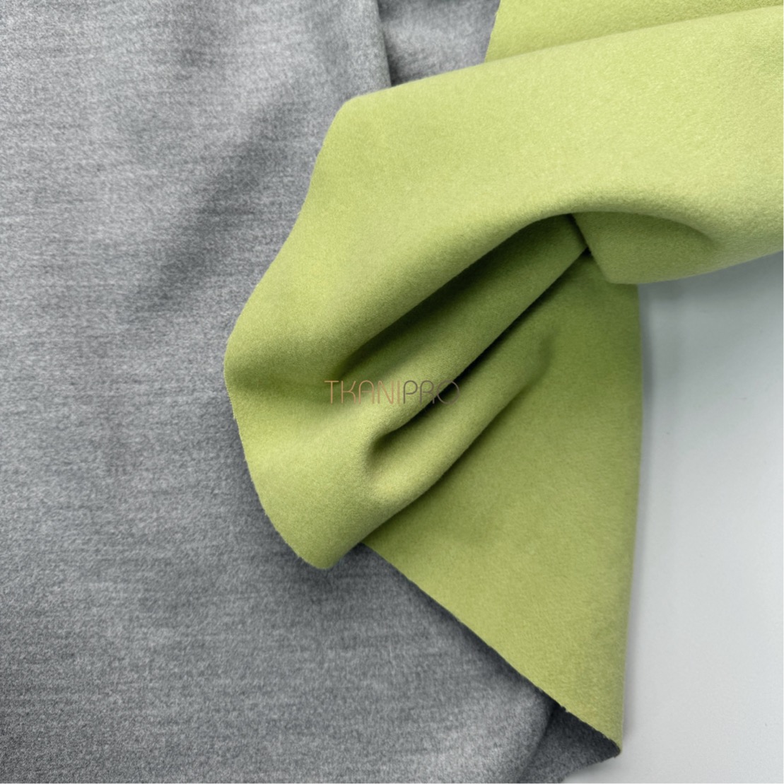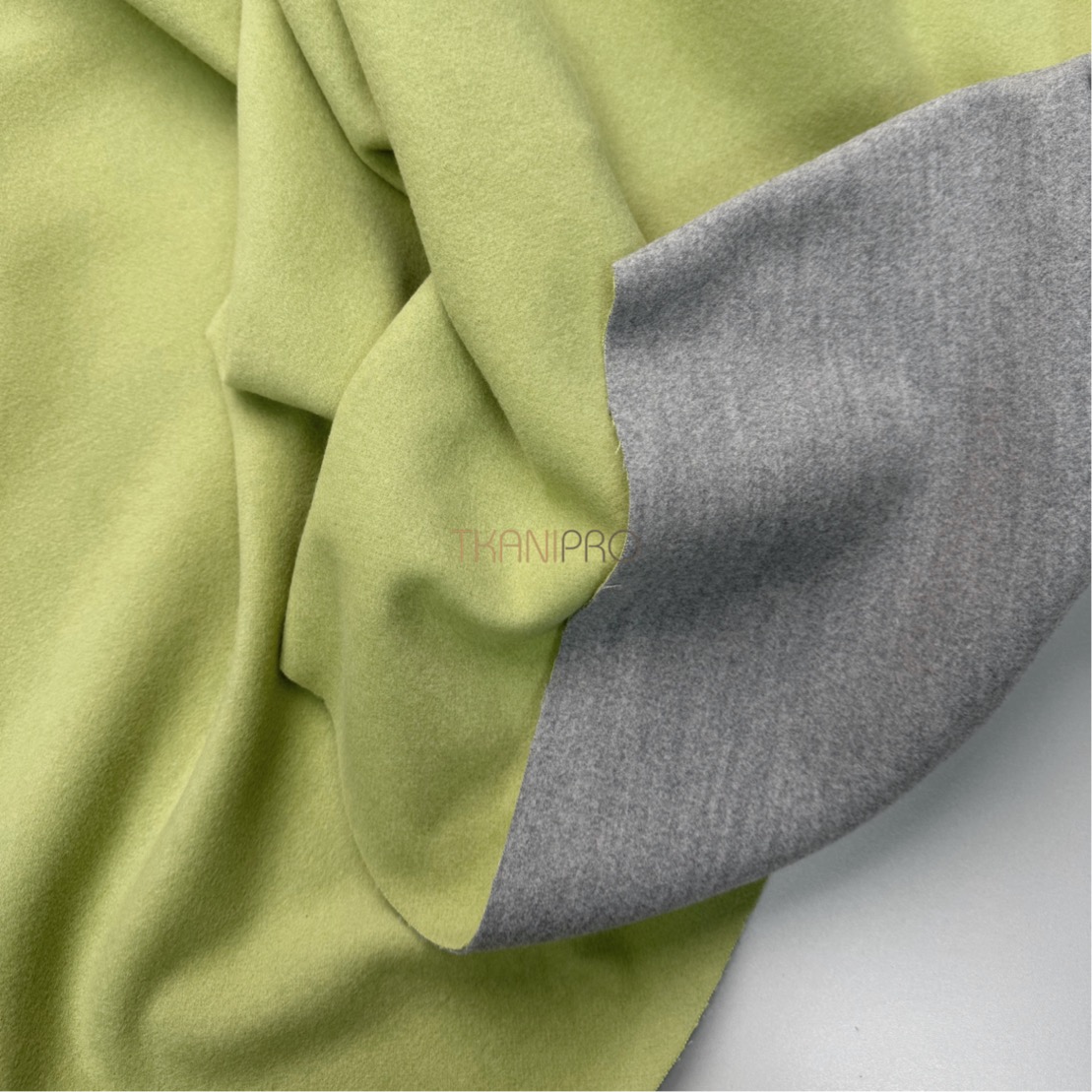 Лицевая сторона у данной ткани отсутствует, поэтому данная ткань идет с маркировкой «double» или «double face». Изделия, сшитые из двух лицевых тканей, можно носить на обе стороны.