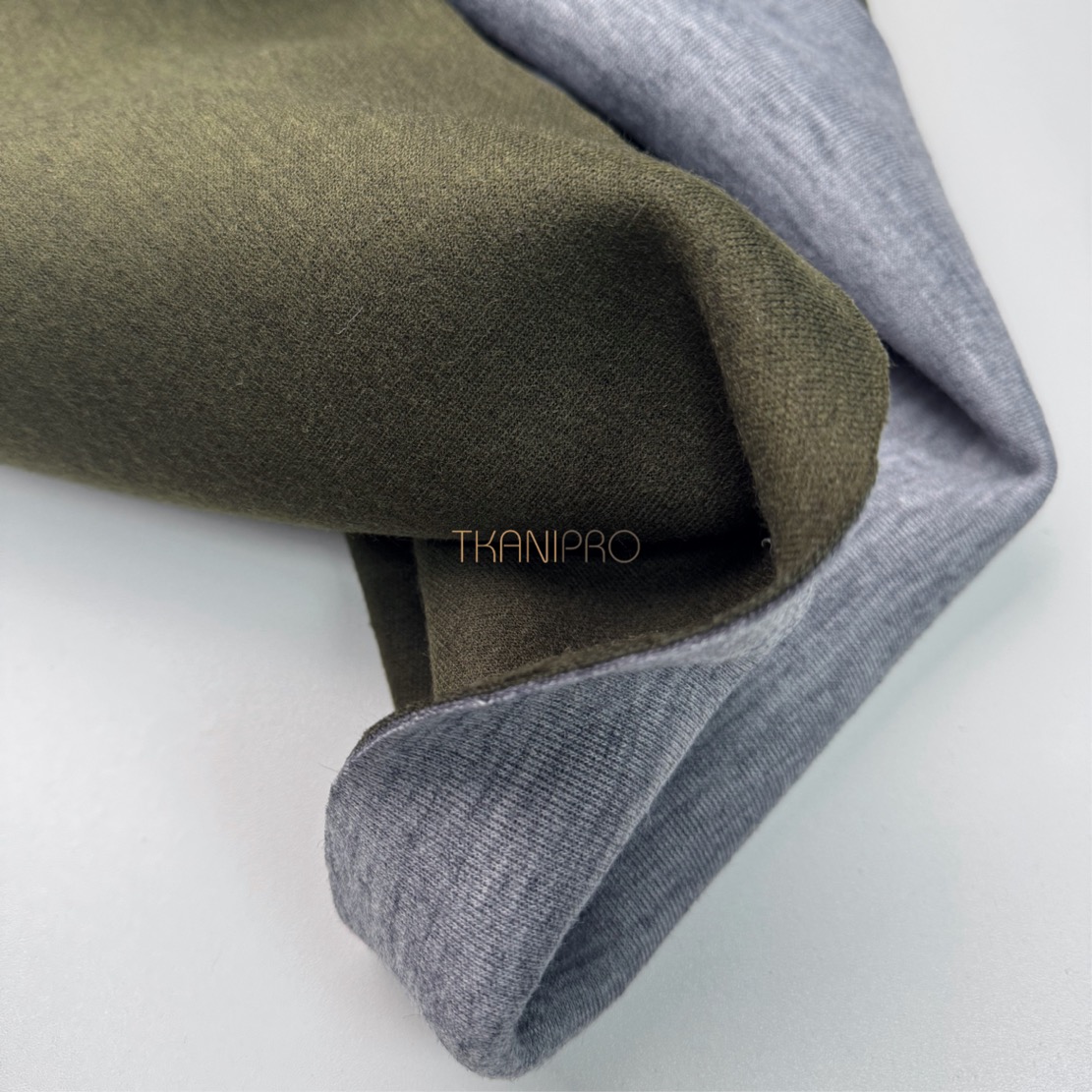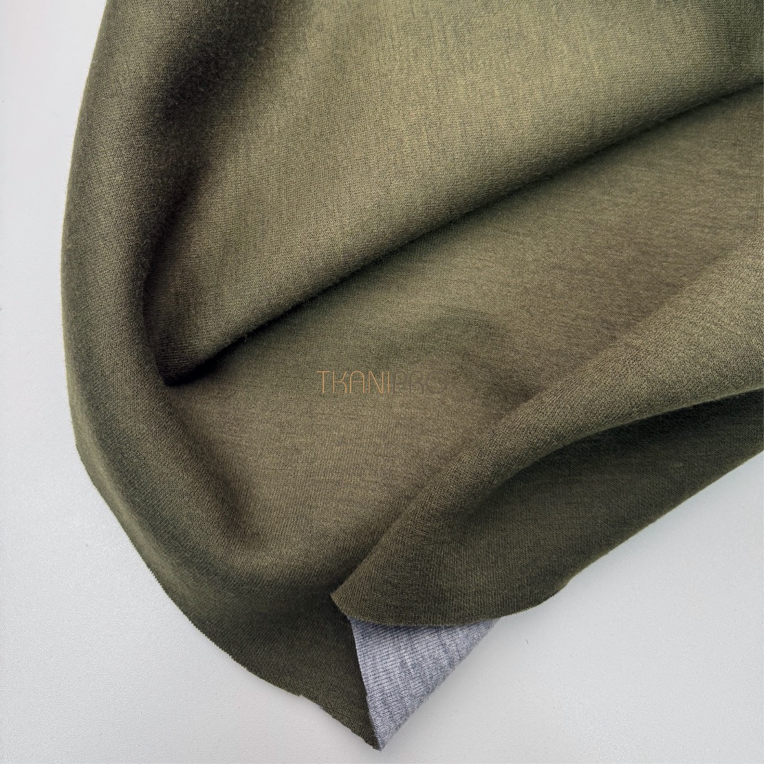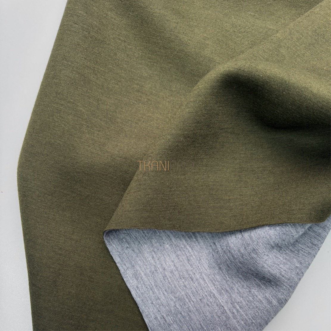 —Трикотаж двухсторонний цвет болотный и серый меланж, арт. D2N2018-4