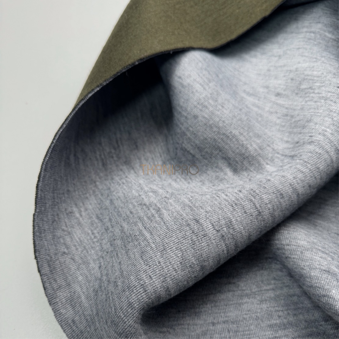Трикотаж двухсторонний цвет болотный и серый меланж, арт. D2N2018-4