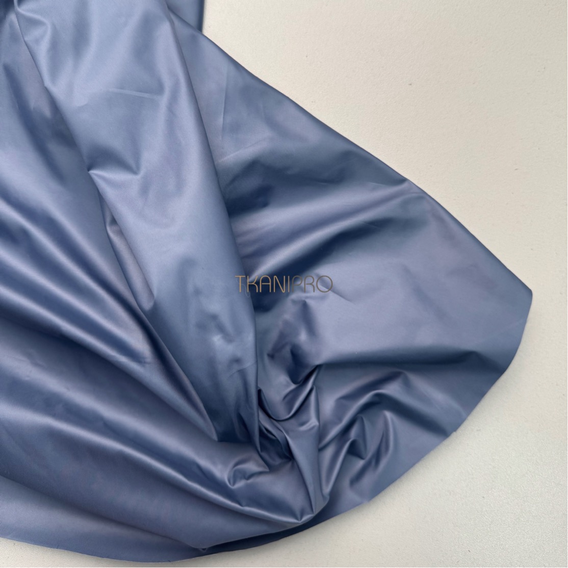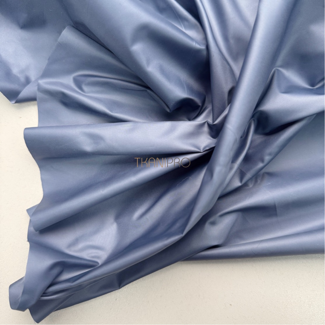 Плащевая ткань дюспо, средней плотности. С защитной пропиткой от влаги CIRE, что придает ей благородный жемчужный блеск. Ткань пластичная, мягкая, хорошо драпируется, немного шуршит, поверхность - гладкая. Без растяжимости. Не меняет своих первоначальных свойств при низких температурах.