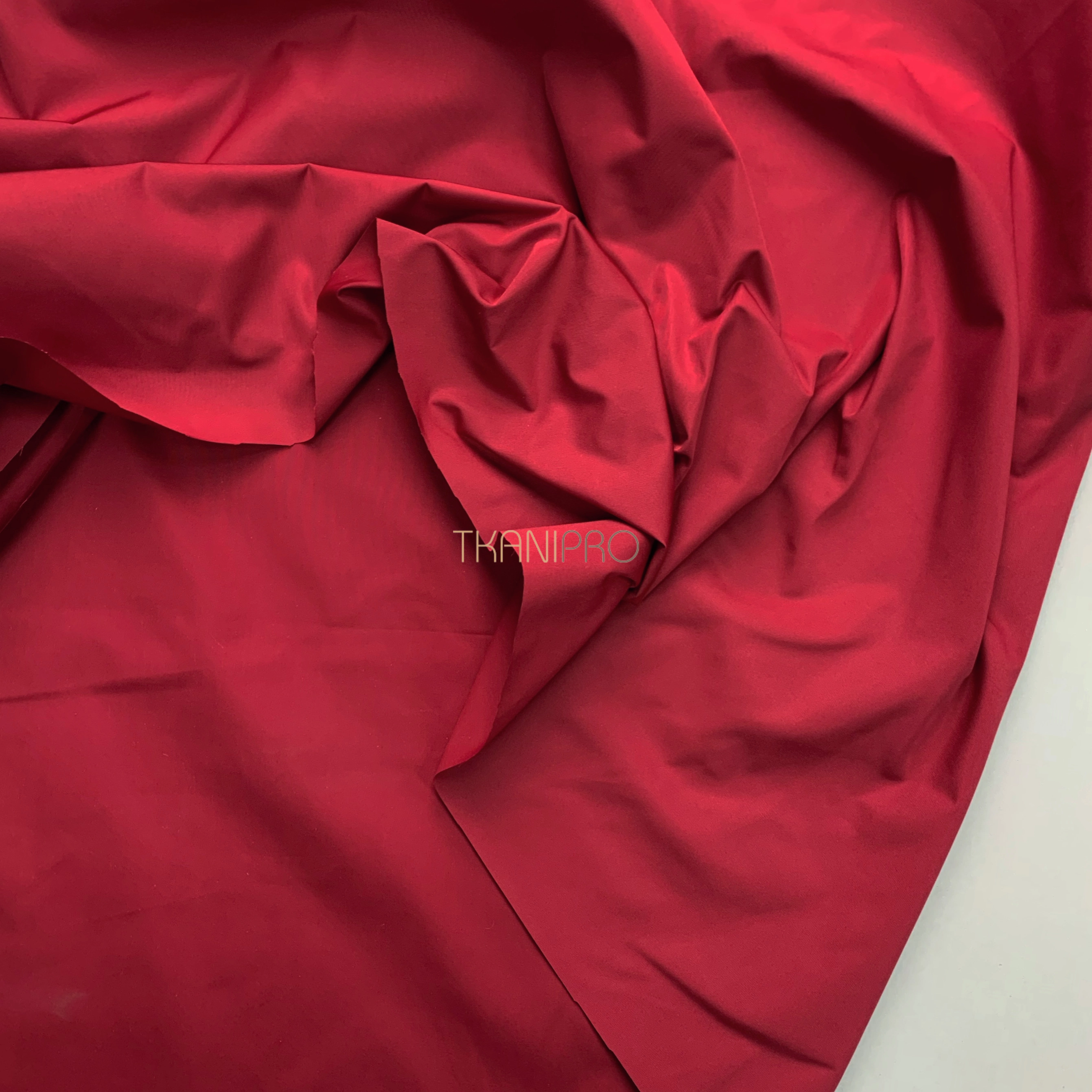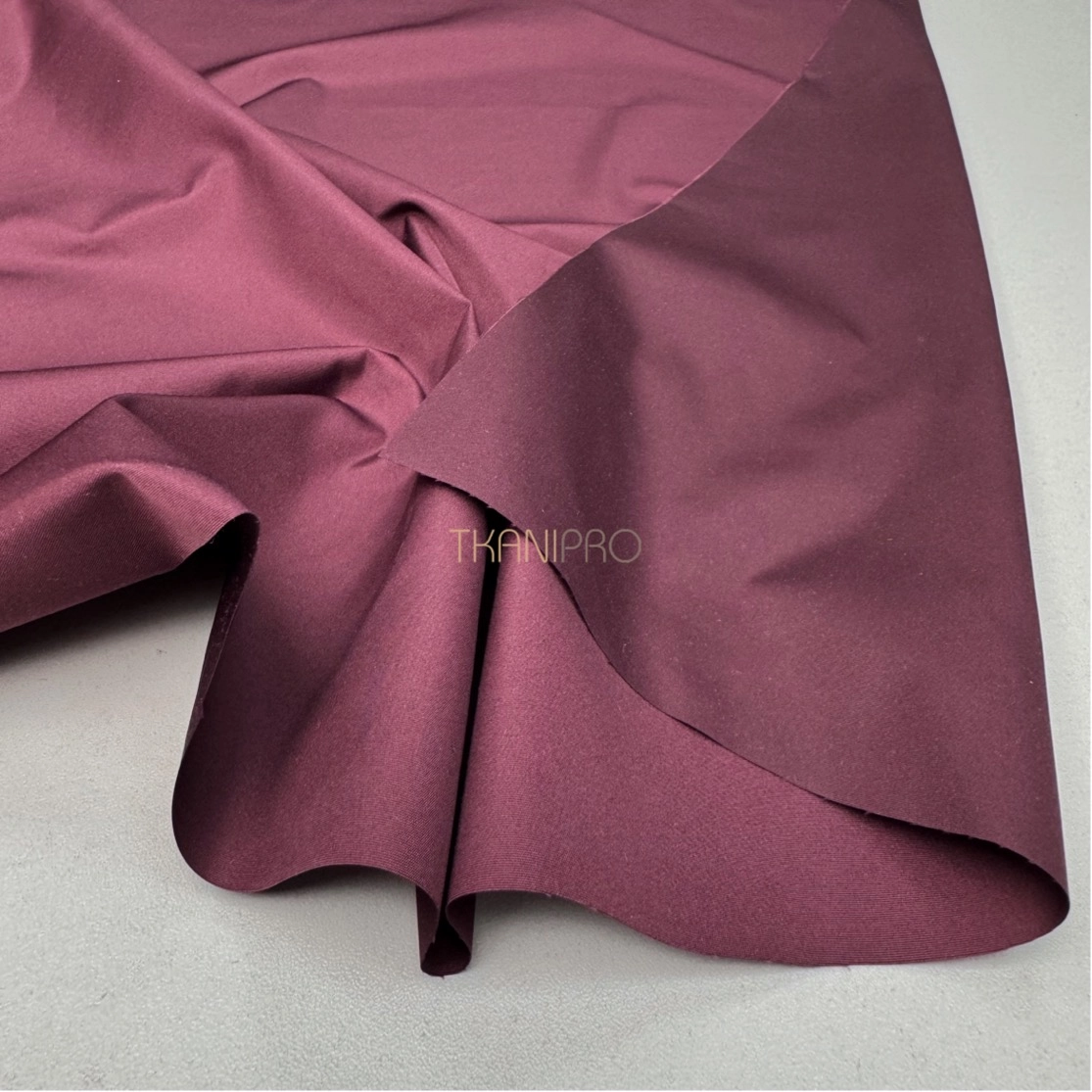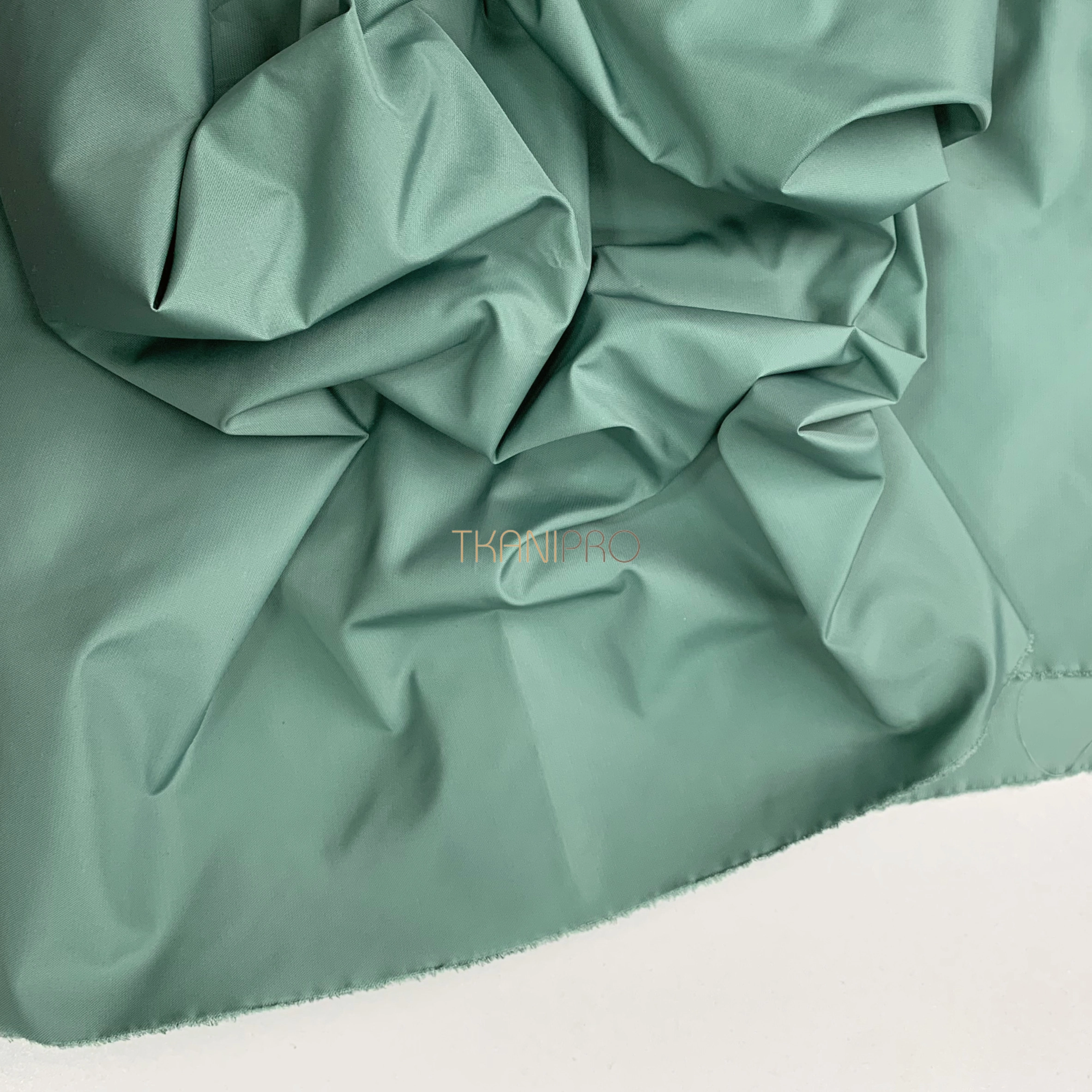 Плащевая ткань дюспо, средней плотности. Матовая. Ткань пластичная, мягкая, хорошо драпируется, немного шуршит, поверхность - матовая без блеска. Без растяжимости. Не меняет своих первоначальных свойств при низких температурах.