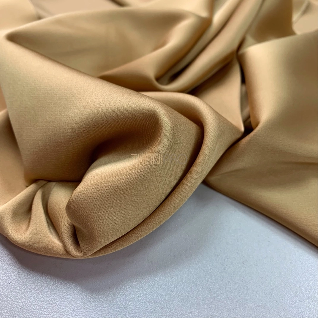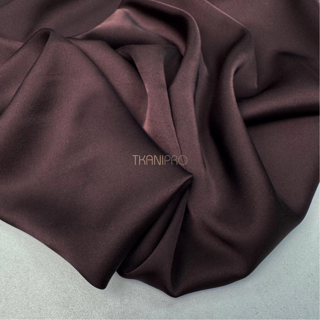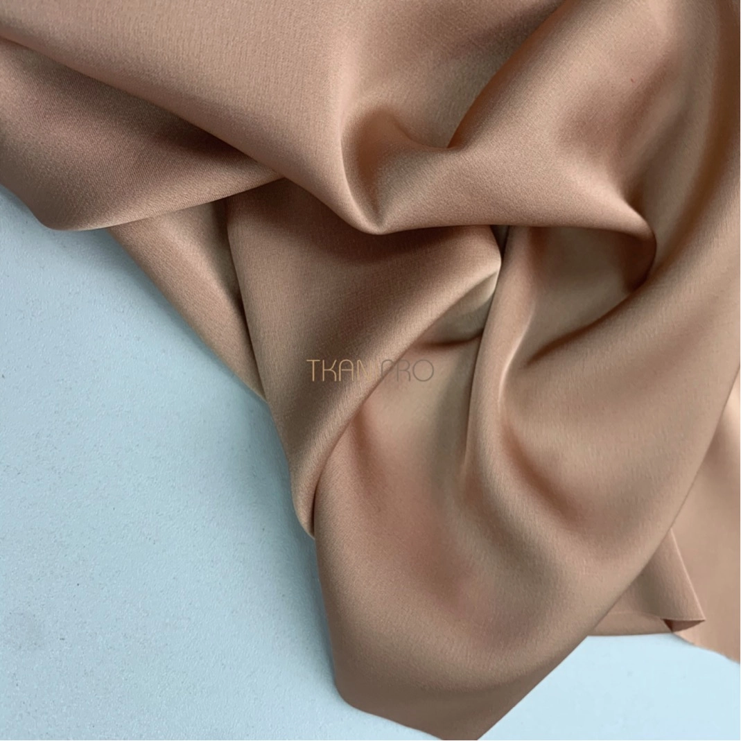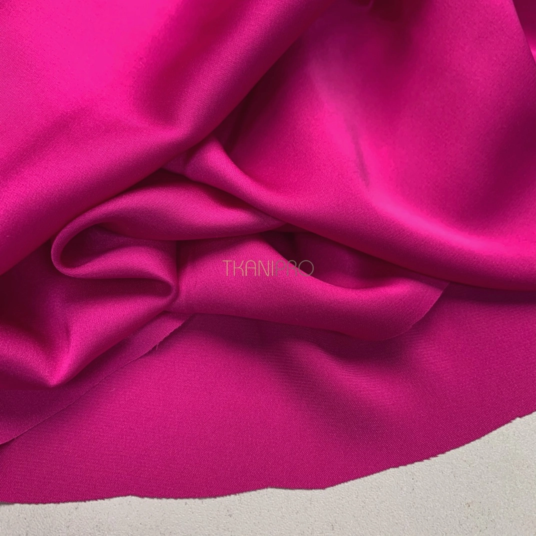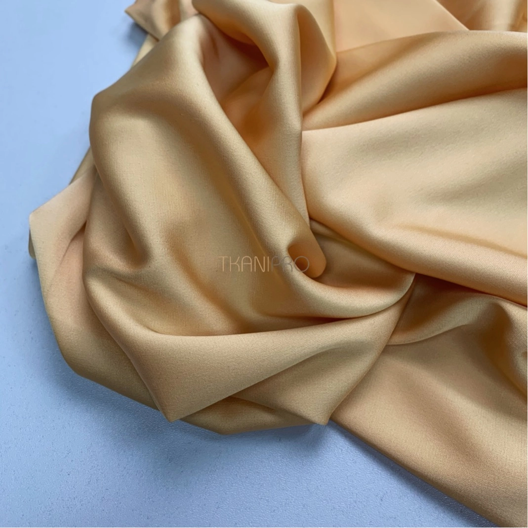 Не уступает своими качествами и внешним видом натуральному шелку. Струящийся, гладкий, шелковистый. С умеренным благородным блеском. Комфортный и приятный в носке. Имеет небольшое растяжение.
