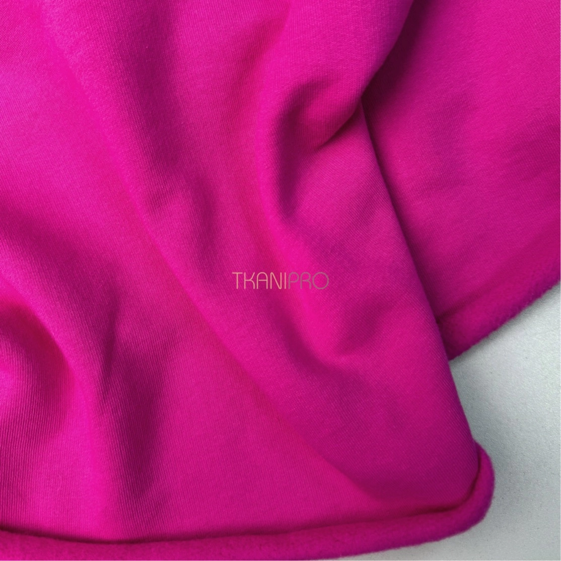 Плотный трикотаж Футер, изготовленный из натурального хлопка высокого качества. Лицевая сторона гладкая, изнаночная - с объемным флисом. Этот начёс создаёт мягкий и пушистый слой, который придаёт дополнительный объём и уют, обеспечивая исключительное тепло. На ощупь ткань мягкая и приятная. Поверхность гладкая. Ткань устойчива к образованию катышек.