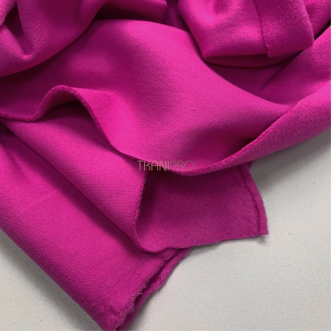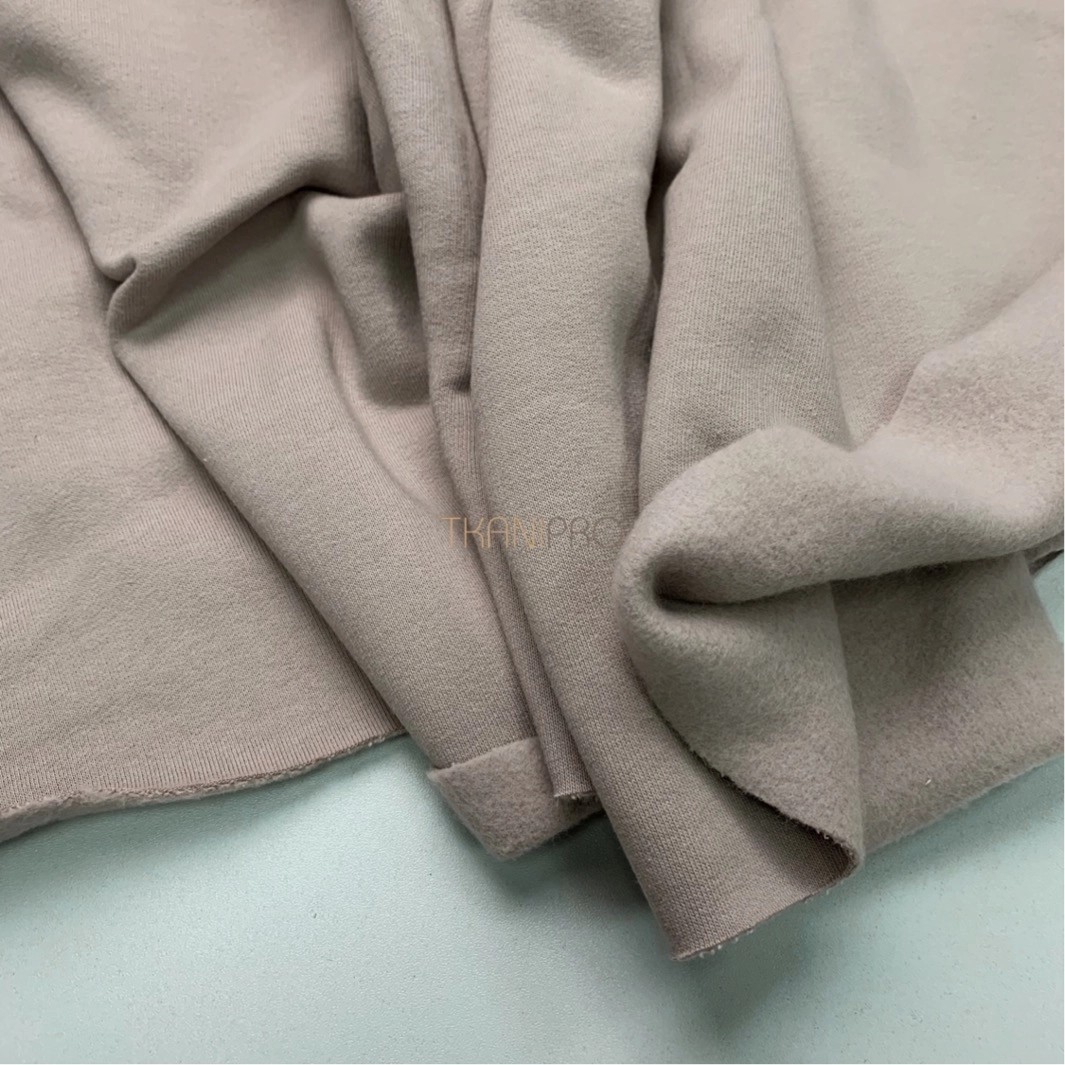 Плотный трикотаж Футер, изготовленный из натурального хлопка высокого качества. Лицевая сторона гладкая, изнаночная - с объемным флисом. Этот начёс создаёт мягкий и пушистый слой, который придаёт дополнительный объём и уют, обеспечивая исключительное тепло. На ощупь ткань мягкая и приятная. Поверхность гладкая. Ткань устойчива к образованию катышек.