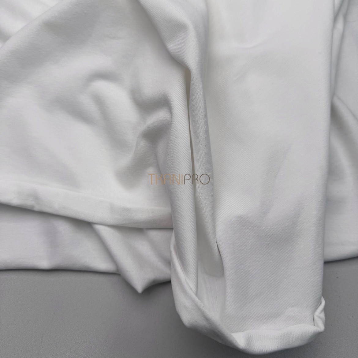 Нежный молочный цвет выглядит свежо и утончённо, подходит для романтичных и кэжуал‑образов. Хлопковая основа «дышит» и не раздражает кожу, идеальна для детской одежды. Лайкра придаёт эластичность, ткань не деформируется и хорошо облегает. Плотность обеспечивает непрозрачность и долговечность. Подходит для футболок, маек, домашней одежды и детских вещей.
