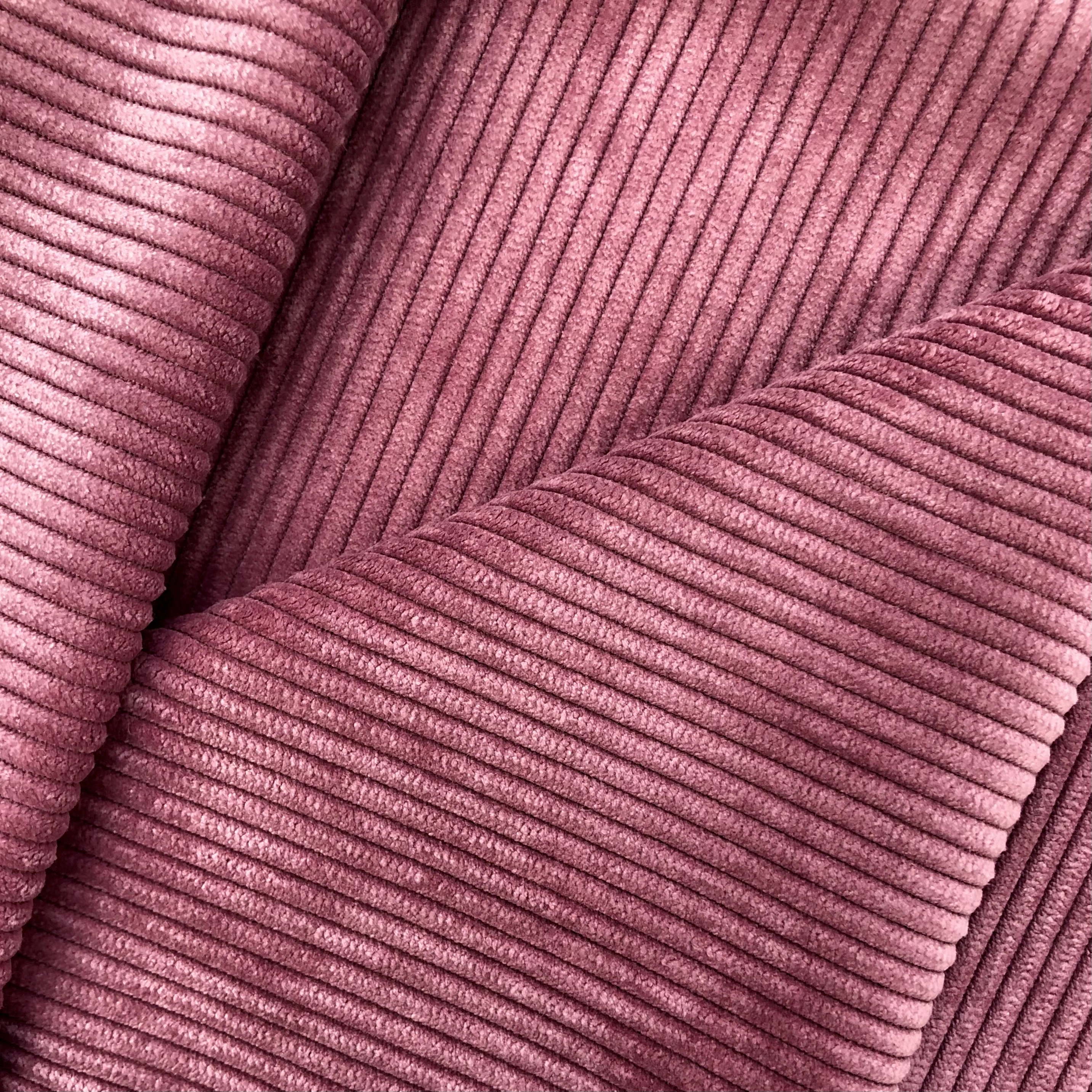 Мягкая, средней плотности, вельветовая ткань в средний рубчик 3 мм. Пластичная и мягкая ткань не стоит «колом», не тянется, хорошо драпируется и складывается в защипы и складки. Практичная вельветовая ткань с хорошей износостойкостью, в области ворсовых тканей, не закатывается, не подвержена пиллингу, устойчива к деформации и вытягиванию при носке и стирке. Не мнется даже после стирки, легко разглаживается с изнаночной стороны.