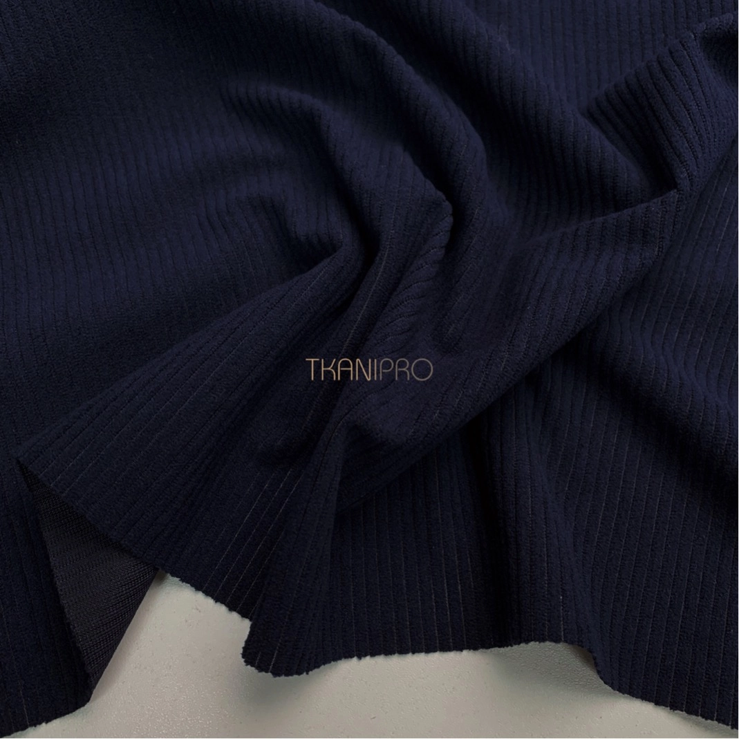 Мягкая, средней плотности, вельветовая ткань в средний рубчик 3 мм. Пластичная и мягкая ткань не стоит «колом», не тянется, хорошо драпируется и складывается в защипы и складки. Практичная вельветовая ткань с хорошей износостойкостью, в области ворсовых тканей, не закатывается, не подвержена пиллингу, устойчива к деформации и вытягиванию при носке и стирке. Не мнется даже после стирки, легко разглаживается с изнаночной стороны.