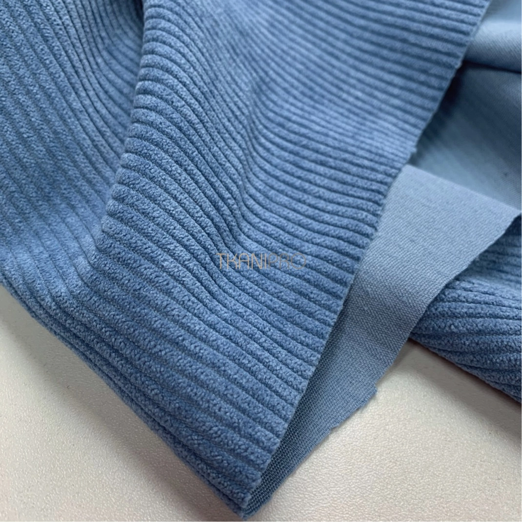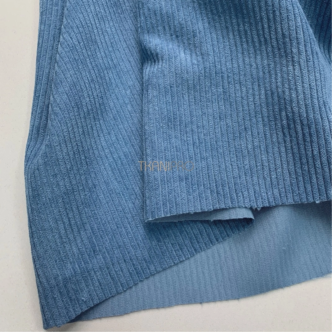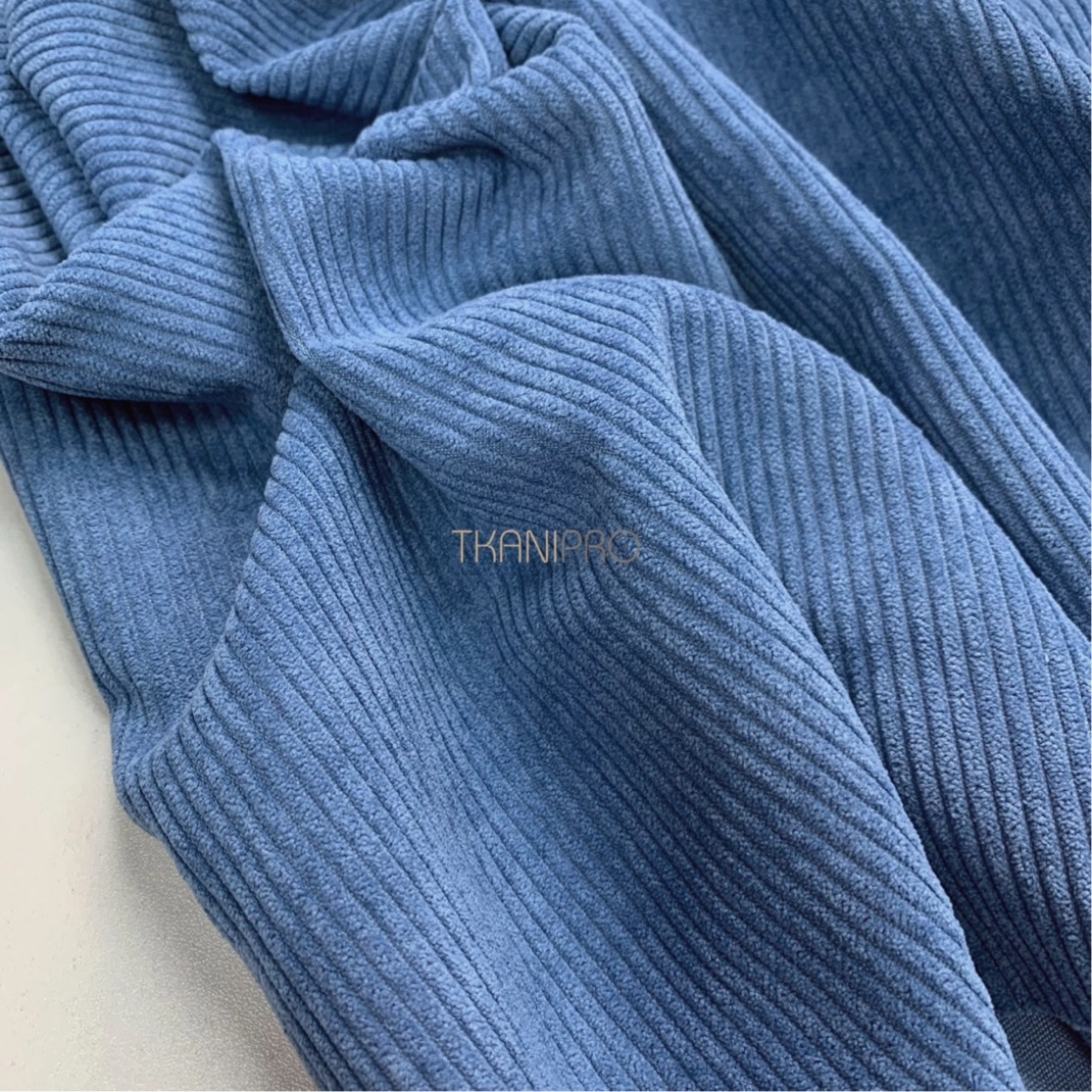 Мягкая, средней плотности, вельветовая ткань в средний рубчик 3 мм. Пластичная и мягкая ткань не стоит «колом», не тянется, хорошо драпируется и складывается в защипы и складки. Практичная вельветовая ткань с хорошей износостойкостью, в области ворсовых тканей, не закатывается, не подвержена пиллингу, устойчива к деформации и вытягиванию при носке и стирке. Не мнется даже после стирки, легко разглаживается с изнаночной стороны.