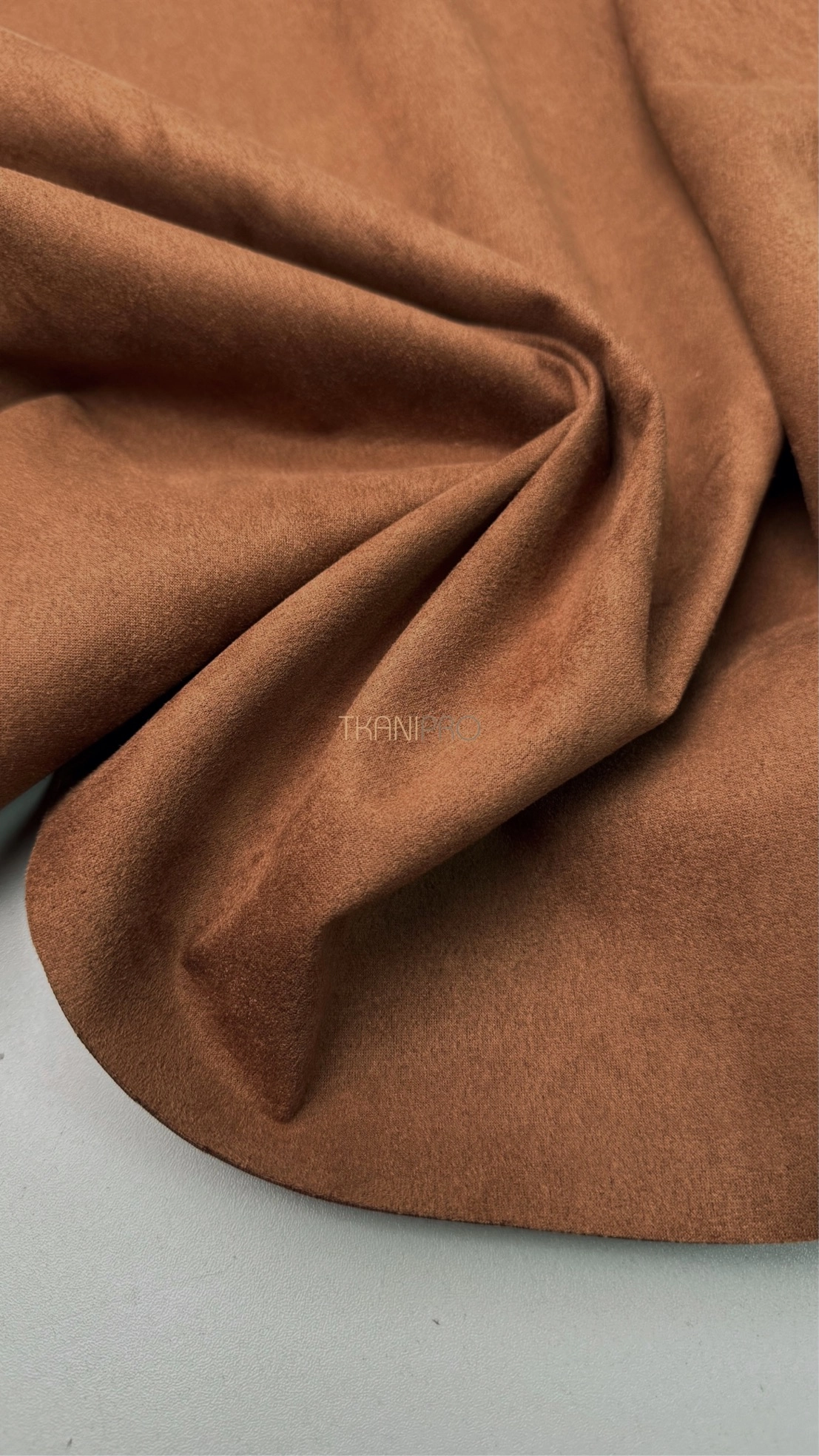 Описание: Искусственная замша на трикотажной основе выглядит как натуральная замша, но при этом имеет множество преимуществ. Лицевая сторона ткани имеет бархатистую поверхность, создающую элегантный и дорогой вид, в то время как изнаночная сторона состоит из тонкого трикотажа, что делает ткань более плотной и комфортной при использовании изделия.